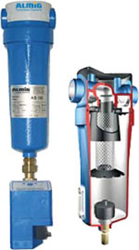 Циклонные сепараторы, предлагаемые ALMiG, разработаны для очистки сжатого воздуха, используемого в промышленности. Благодаря оптимизированной конструкции корпуса, состоящего из трех частей и винтовой вставки, обеспечивается низкое дифференциальное давление при высоких расходах. Коническая форма сечения корпуса фильтра исключает возможность захвата отделенных аэрозолей. Безвихревая зона в нижней части корпуса фильтра предотвращает вынос потоком воздуха конденсата, уже отделенного во влажной зоне.